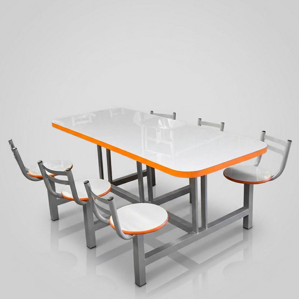Uso: Em refeitórios indústriais com grande fluxo de usuários, muito resistente a multiplas limpezas diárias. Sua estrutura monobloco garante uma longa durabilidade sem apresentar desgaste e sem necessidade de ajustes e reapertos de parafusos.