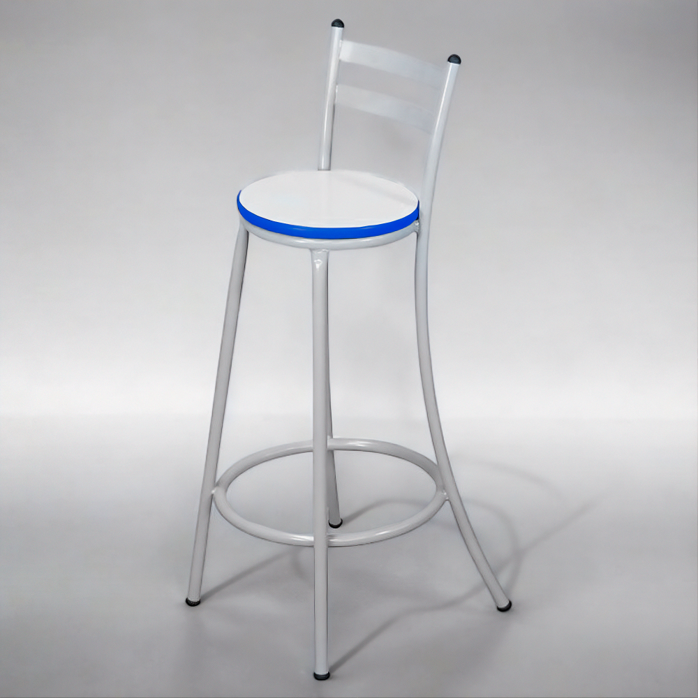 Resistente e elegante a banqueta alta com encosto pode ser facilmente usada em diversos ambientes e locais.