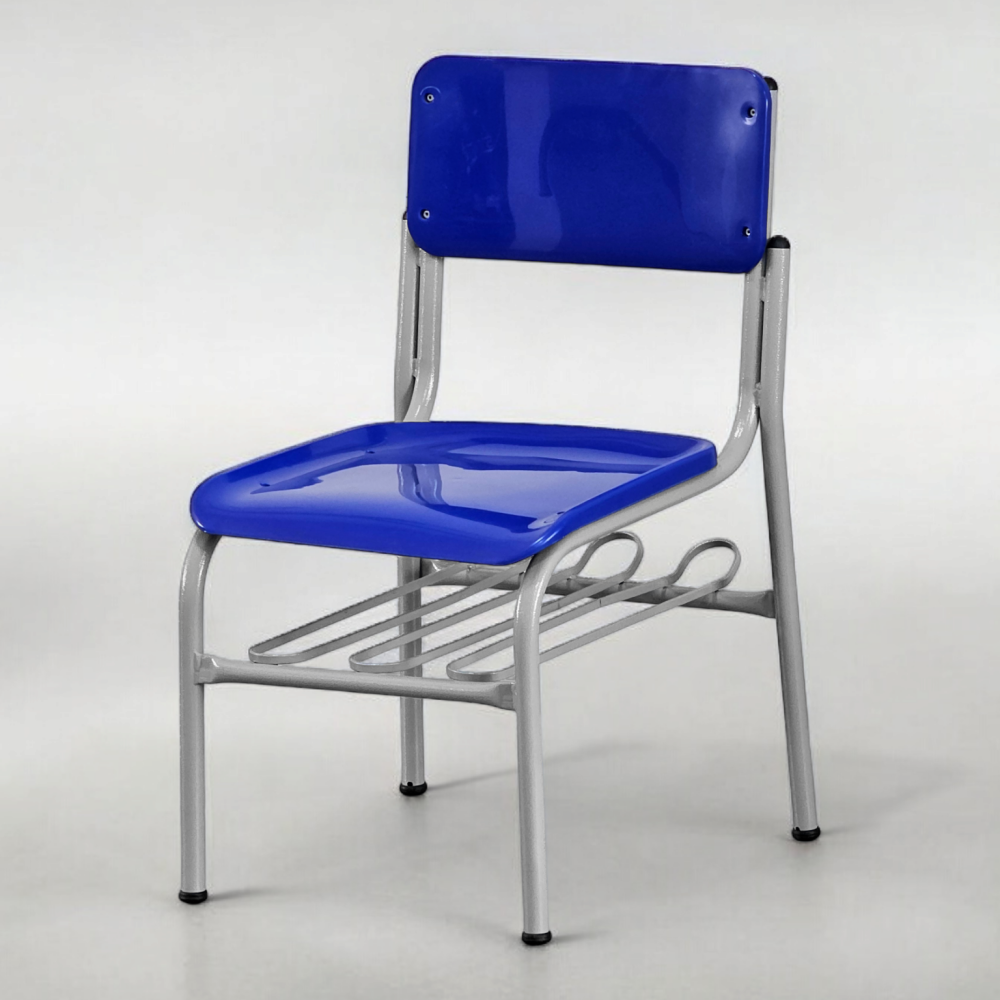 Uso: Em escolas, colégios, kumons, salas de treinamento em geral com grande fluxo de usuários, muito resistente a multiplas limpezas diárias. Sua estrutura monobloco com travas de reforço garante uma longa durabilidade sem apresentar desgaste nas ponteiras deslizadoras em polipropileno.