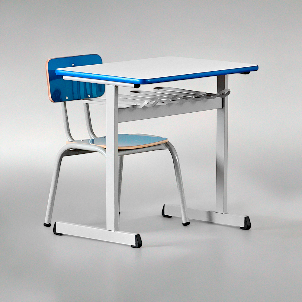 Um conjunto pra aluno muito espaçoso e resistente. É possível combinar cores distintas entre suas peças, personalizando sua sala de aula.
