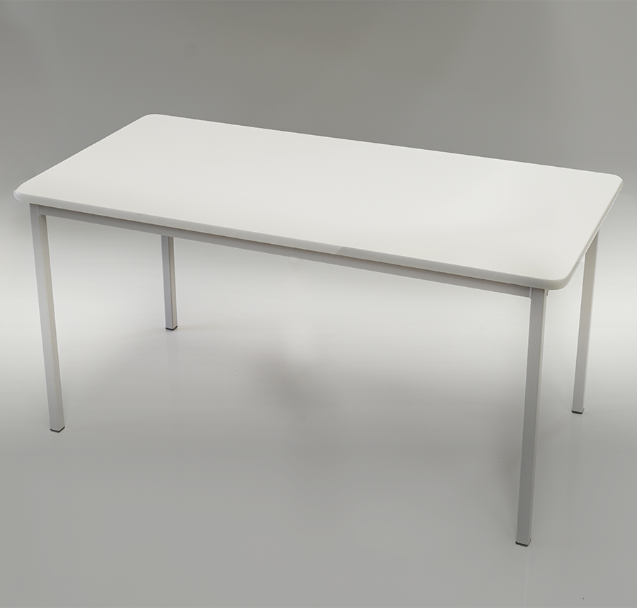 Para crianças até 7 anos, é disponível em muitas medidas e cores. Seu formato permite encostar um lado em parede ou outra mesa.