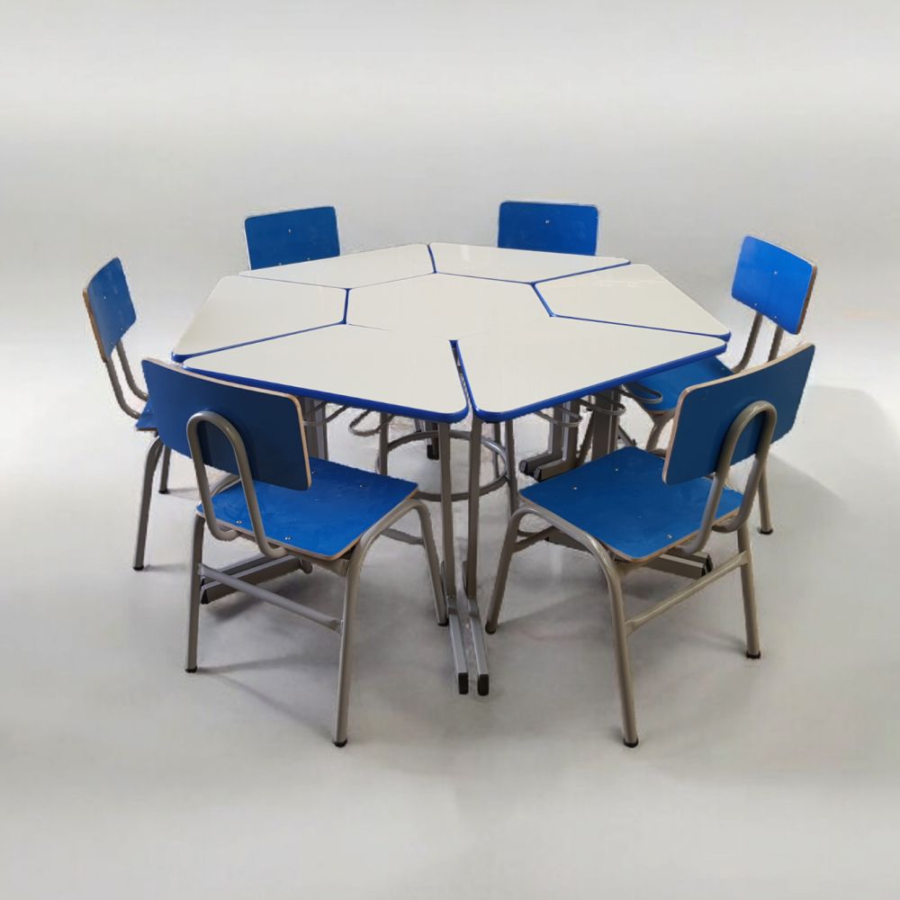 Uso: Em escolas, colégios, kumons, salas de treinamento em geral com grande fluxo de usuários, muito resistente a multiplas limpezas diárias. Sua estrutura monobloco garante uma longa durabilidade sem apresentar desgaste e sem necessidade de ajustes e reapertos de parafusos.