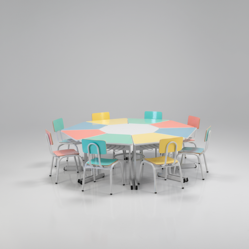 Uso: Em escolas, colégios, kumons, salas de treinamento em geral com grande fluxo de usuários, muito resistente a multiplas limpezas diárias. Sua estrutura monobloco garante uma longa durabilidade sem apresentar desgaste e sem necessidade de ajustes e reapertos de parafusos.