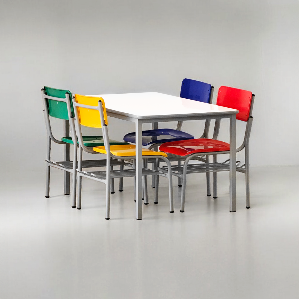 Uso: Em escolas, colégios, kumons, salas de treinamento em geral com grande fluxo de usuários, muito resistente a multiplas limpezas diárias. Sua estrutura monobloco garante uma longa durabilidade sem apresentar desgaste nas ponteiras deslizadoras em polipropileno.